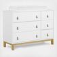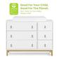 The babyGap by Delta Children Legacy 6 Drawer Dresser with Leather Pulls and Interlocking Drawers is a spacious and stylish storage option. A great addition to any nursery or kids’ bedroom, the leather drawer pulls add a fun detail to the piece. Crafted of sturdy, sustainable materials like New Zealand pine to give it plenty of longevity, this versatile dresser has a mix of small and large drawers to simplify organization. For your child’s safety, this dresser is outfitted with an interlocking drawer system that limits the number of drawers that can be opened at one time. Plus, it’s Greenguard gold Certified, which means it’s built to contribute to cleaner air for a healthy home. Easily mix, match, and layer with other items from the babyGap Furniture and Bedding Collection. Pair with the coordinating Changing Top #W173810 to convert the dresser into a convenient changing table (Changing Top and changing pad sold separately). This babyGap by Delta Children dresser is tested to meet the current requirements of ASTM F2057, the mandatory CPSC safety standard that protects young children from furniture tip-over incidents. For your children’s safety, only purchase dressers that comply with this standard. For additional security, babyGap strongly recommends that all dressers in your home be anchored; all babyGap dressers include a wall anchor. To learn how to properly secure your dresser, please see the product assembly instructions or visit our website.