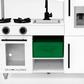 Your aspiring chef can cook up elaborate meals with this Delta Children Deluxe Modern Kitchen. Made for hours of imaginary play, the detail-packed design includes knobs that turn and click, a working ice dispenser with cup and 2 ice cubes, and appliance doors that open and close. There's also a play oven, microwave and sink. With the Deluxe Modern Kitchen, kids can exercise their creativity, imagination, and real-world learning abilities individually or with others. The endless features allow kids to interact and mimic everyday kitchen tasks they see from adults. With sleek hardware, playful curves and a modern look, it's a thoughtfully designed piece for the playroom. Functional shelving and the recycling themed fabric bin provides plenty of convenient storage to stow everything away. Assembly is easy with the included step-by-step instructions and high-quality hardware.