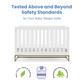 The Jade 4-in-1 Convertible Crib by Delta Children is the new gold standard for modern nurseries with its gorgeous bronze metal base. Stylish and safe, it’s GREENGUARD Gold Certified, which means it’s built to contribute to cleaner air for a healthy home. A standout piece for years to come, this crib features an adjustable mattress support that allows you to lower the mattress height as your baby grows. When your child is ready, its versatile design easily adapts from crib to a cozy toddler bed, daybed and sofa (Daybed/Sofa Rail included; Toddler Guardrail #0094 sold separately). The Jade 4-in-1 Convertible Crib by Delta Children is available in Bianca White and Ebony. Coordinates with the Jade Changing Table (sold separately).
