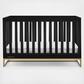 The Jade 4-in-1 Convertible Crib by Delta Children is the new gold standard for modern nurseries with its gorgeous bronze metal base. Stylish and safe, it’s GREENGUARD Gold Certified, which means it’s built to contribute to cleaner air for a healthy home. A standout piece for years to come, this crib features an adjustable mattress support that allows you to lower the mattress height as your baby grows. When your child is ready, its versatile design easily adapts from crib to a cozy toddler bed, daybed and sofa (Daybed/Sofa Rail included; Toddler Guardrail #0094 sold separately). The Jade 4-in-1 Convertible Crib by Delta Children is available in Bianca White and Ebony. Coordinates with the Jade Changing Table (sold separately).