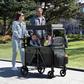 From park strolls to grocery store runs, the Jeep Aries 2-Seater Stroller Wagon by Delta Children makes any outing an adventure. Designed with today's families in mind, this versatile stroller wagon incorporates features to encourage autonomy, self-discovery, imaginative play, and sensory development. This convertible wagon offers a range of seating options to accommodate two children both seats can face forward, both can face backwards, both can face inwards, both can face out in different directions, or you can remove the seats completely and use the wagon to carry all your gear. The built-in footrests make facing outwards comfortable for kids of all ages. The wagon’s removable canopy has roll down mesh screens for ventilation or black out privacy screens for on-the-go naps. Take advantage of the wagon’s expansive storage. The wagon features front and rear storage pockets, zippered storage compartments under the seats, kids snack tray, plus two parent cup holders. Two adjustable leatherette handlebars ensure a comfortable grip for parents of all heights, while the large, puncture-proof tires with suspension provide a smooth ride on any terrain. The wagon’s flat fold makes it easy to store and transport. It’s the perfect all-in-one solution for growing families. Greenguard Gold Certified.