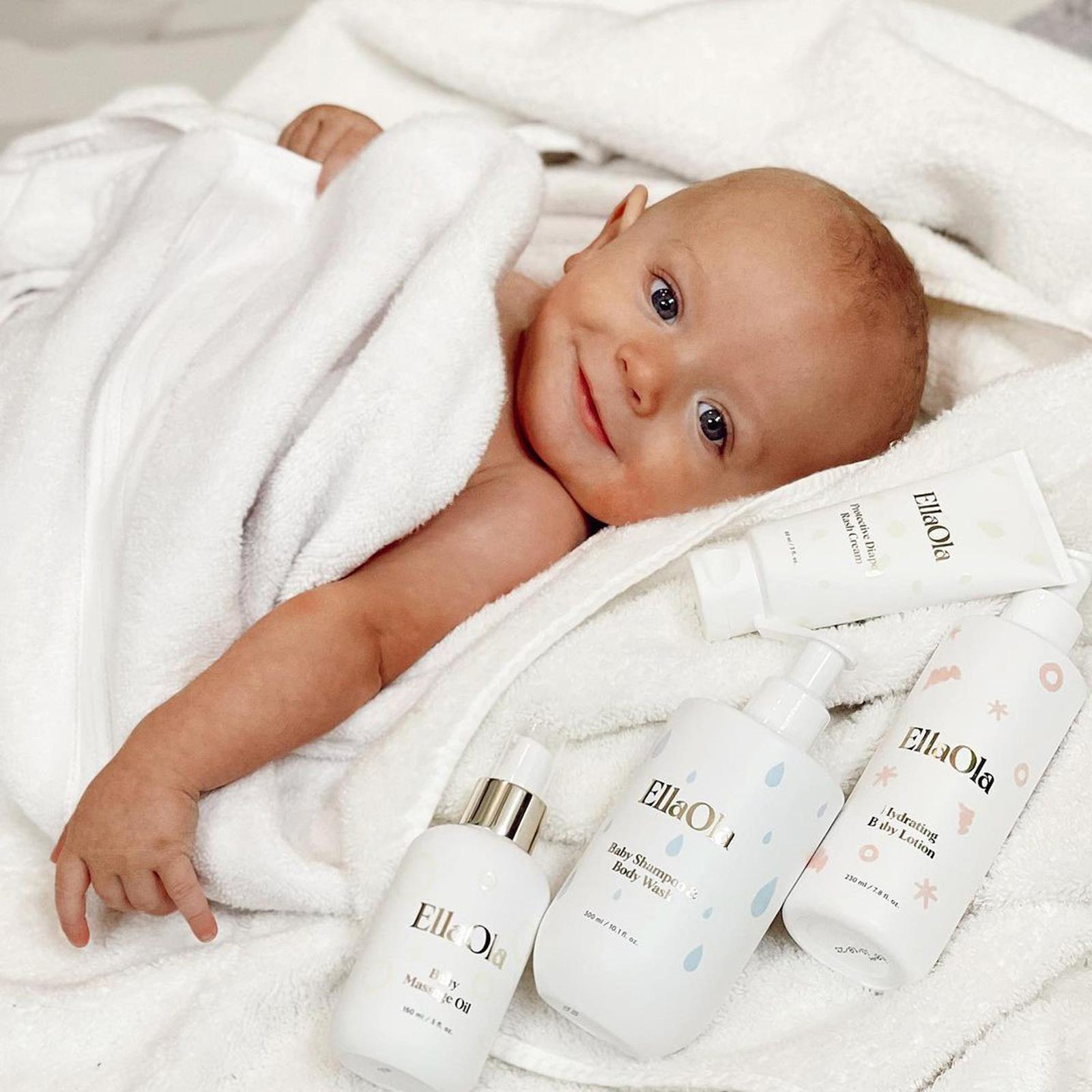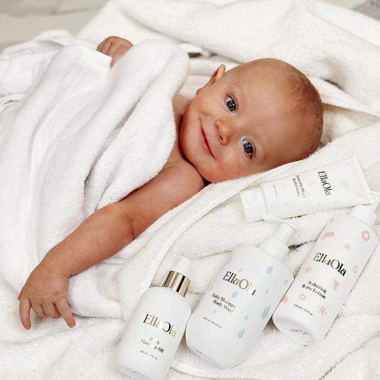 The Baby's Essential Gift Set is a 4-product bundle perfect for baby showers that covers all your baby care needs, from bathtime, diaper changes to baby massages and bedtime.