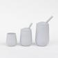 Dimensions: tiny: capacity: 2 oz.; 2 x 2.5 in.; mini: capacity: 4 oz.; 2.7 x 3.5 in.; happy: capacity: 8 oz.; 3.5 x 8 in.