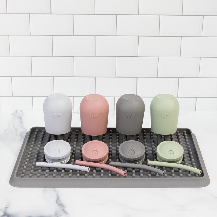 The Drying Rack was designed to help dry + store all of your essential baby/toddler gear-including products! The removable pegs make the rack customizable to suit your drying needs. Plus, modern-day parents can proudly display the chic design on their counter. Set includes [1] Silicone Mat and [4] ABS Pegs.