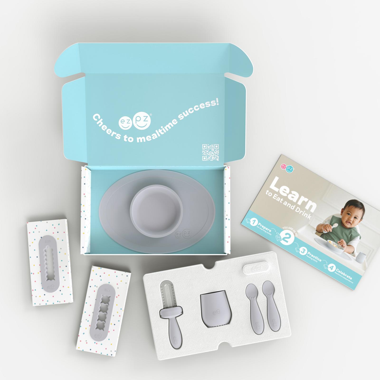 ezpz’s Kit 2 is a set of expertly designed tools that help your baby practice chewing, sipping, and self-feeding safely as they begin purees and/or baby-led weaning. Inside you'll find our Baby-Led™ Gumline Feeder, Tiny Cup, and Tiny Spoons, as well as the BLW Food Cutters and Tiny Bowl.