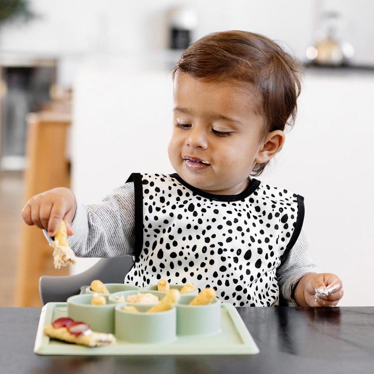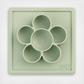 The Mini Play Mat is an all-in-one mat + flower compartments that assists with painting, sorting and other crafts. It suctions directly to any flat surface, making it difficult for "crafting" hands to tip over their paints, glitter and beads.