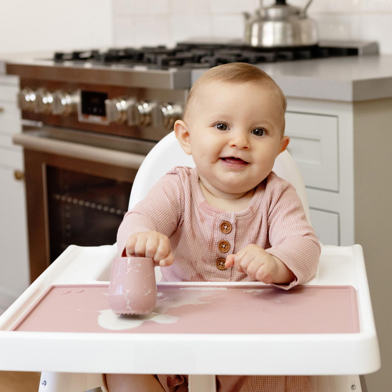 The Tiny Placemat is a non-slip, Placemat that fits on most highchair trays (including the Ikea Antilop). The placemat comes with a travel band, which allows you to roll-up the mat and use it on the go.