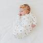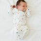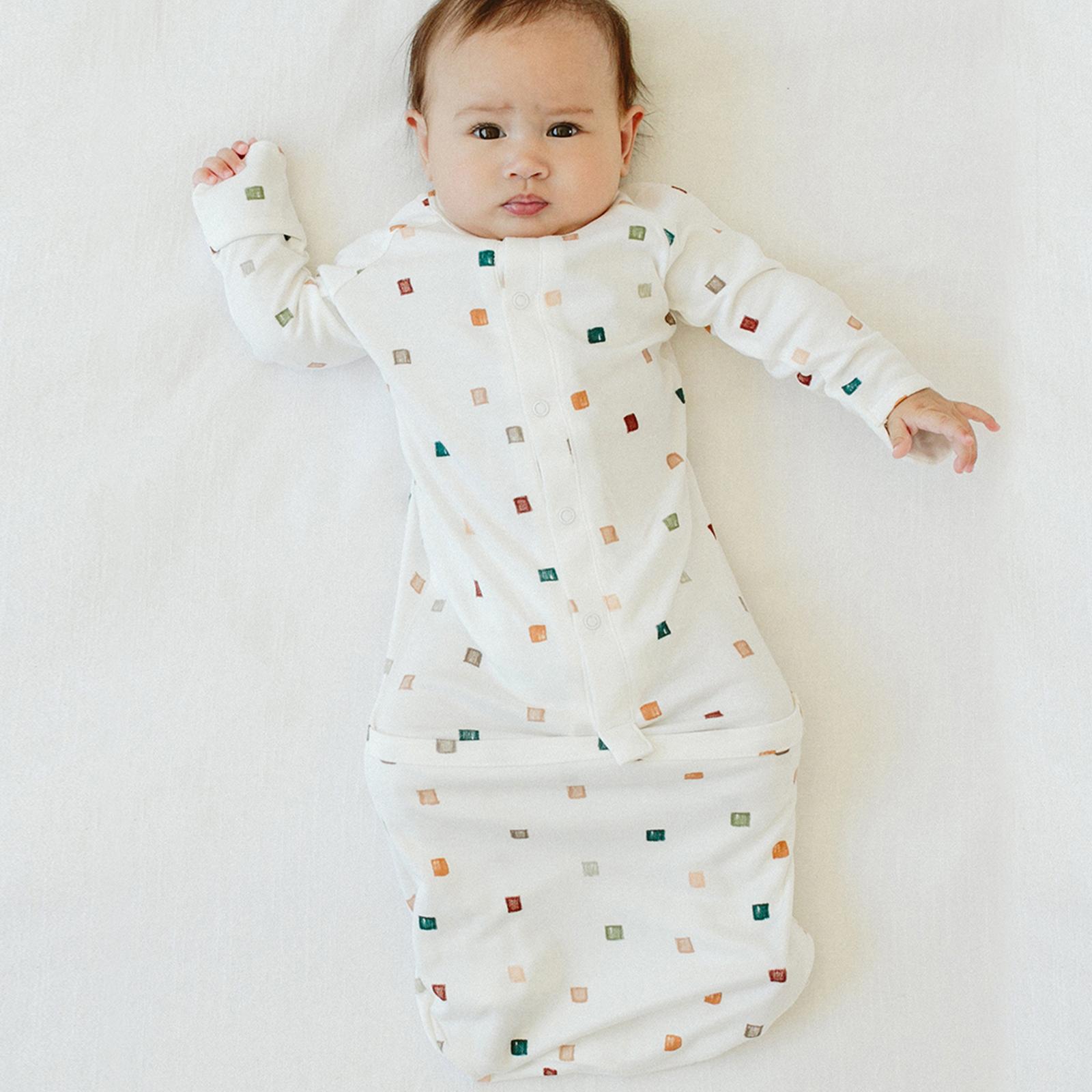 The original and patented convertible sleeper gown that your baby will live in their first few months, all day and all night long! Converts from baby gown to sleeper. Has a one snap closure to seamlessly transition between wake time to sleep time to change time. Built-in Goumi mitts with high contrast pattern to boost brain-eye development. Ultra soft & built for hand me downs.