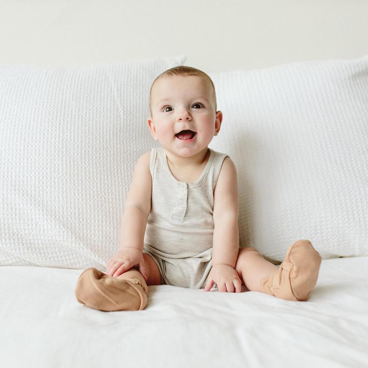 Never lose another sock! A super-soft baby boot that's adjustable and stays on, no matter what. Oursignature two-part closure keeps boots on and adjusts as baby grows. Luxuriously soft & built for hand me downs.