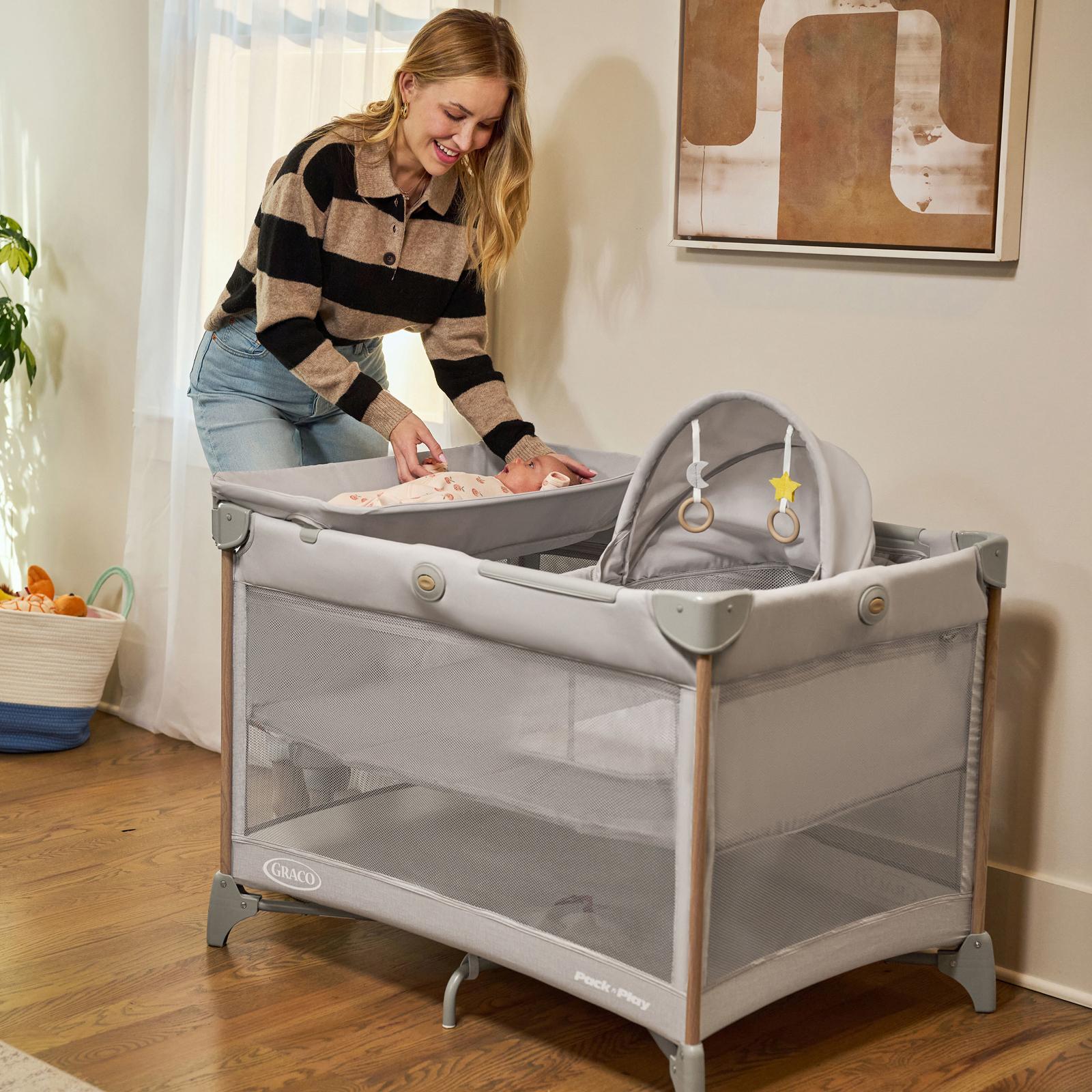 The Graco® Pack 'n Play® Care Suite™ Bassinet Lux Playard is packed with features to nurture your little one's big milestones in a single playard. This complete system features 4 modes of use which support your baby's routines at home and on the go. The cozy newborn bassinet is crafted with soft fabrics for comfortable sleep. A zip-in, full-sized bassinet keeps baby close and in-view as they grow for easy check-ins, day or night. Then, as your child grows, the full-sized toddler playard provides a comfortable, safe environment for playtime and nap time. The wipe-clean care station changer helps make diaper changes a breeze. This playard follows AAP Safe Sleep Guidelines to help create a safe sleep environment from infant bassinet to toddler playard modes, and the playard's 360-degree mesh sides will allow you and your baby can breathe easy. With our included carry bag, travel and storage have never been easier.