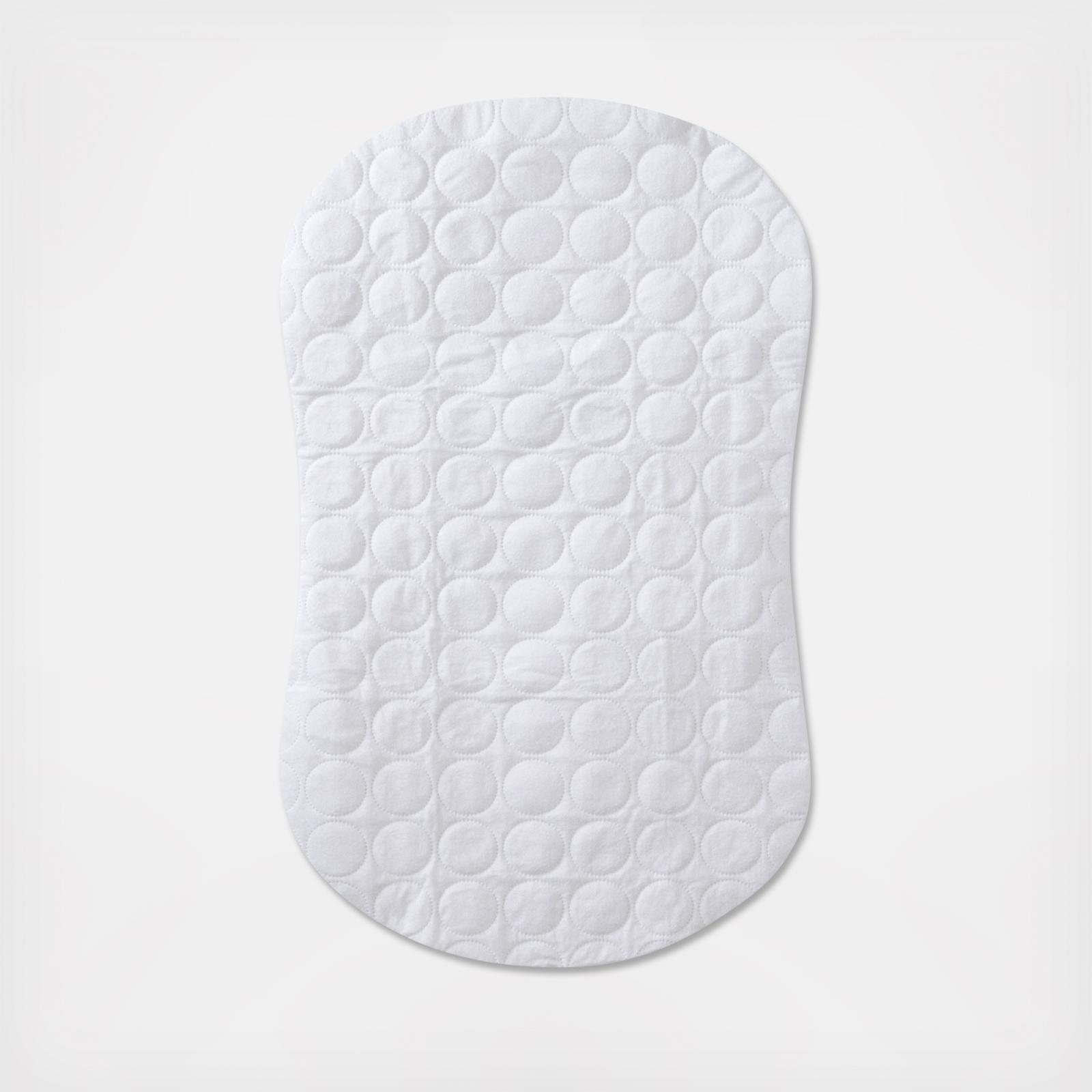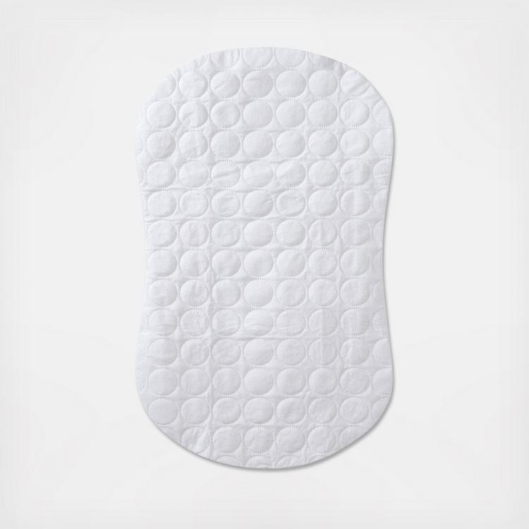 Protect the HALO BassiNest mattress with this custom designed pad from HALO. This pad features an hourglass shape with envelope design to ensure a perfect and secure fit to the unique shape of the HALO BassiNest mattress. Plus, it's quilted, with three layers of polyester material that creates a waterproof barrier that will help protect the mattress from leaks and odors.