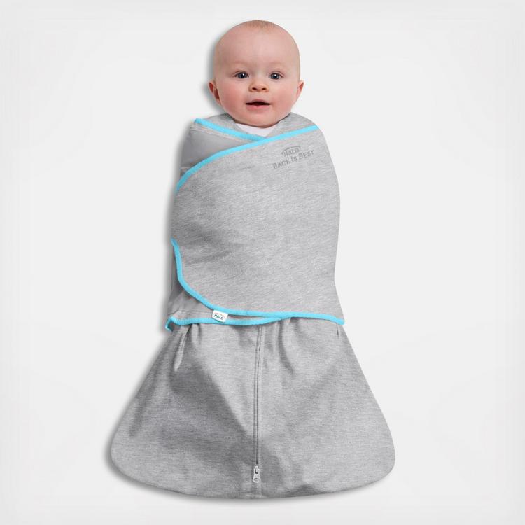 HALO® SleepSack® swaddle Ideal Temp with IntelliThread™ Technology helps to regulate your baby’s temperature. This innovative material absorbs, stores, and releases heat to help ensure baby is perfectly safe and comfortable. The IntelliThread™ fibers are embedded within the cozy fabric and won’t wash out or fade. Also includes HALO®’s signature 3-way swaddle design that adjusts to fit baby’s sleep style: arms in, hands-to-face, or one or both arms out. Signature “Back is Best” embroidery is a gentle reminder to place baby in the recommended sleep position. Features an inverted zipper for easy diaper changes and scratch-free zipper covers. Roomy sack design is recognized by the International Hip Dysplasia Institute as promoting healthy hip development. For use over regular sleepwear.