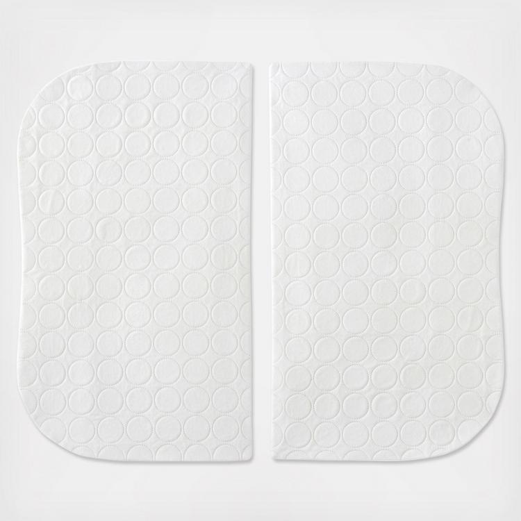 Protect the HALO Bassinest twin sleeper mattresses with these custom designed replacement pads from HALO. These mattress pads features a unique shape to perfectly fit the HALO Bassinest twin sleeper mattresses. The pads have an envelope design to ensure a secure fit that won’t become loose with use. Plus, they’re quilted, with three layers of 100% polyester material that create a waterproof barrier that will help protect the mattresses from leaks and odors.