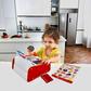 Cash register features lights and sound with a calculator. Select your groceries then work out the price. Solar-powered calculator with scanner. Kids can customize their grocery list with included stickers. Press the red button to open the cash drawer. Encourages early math learning. Helps develop social language skills and imagination. Requires 2 AA batteries (NOT included).