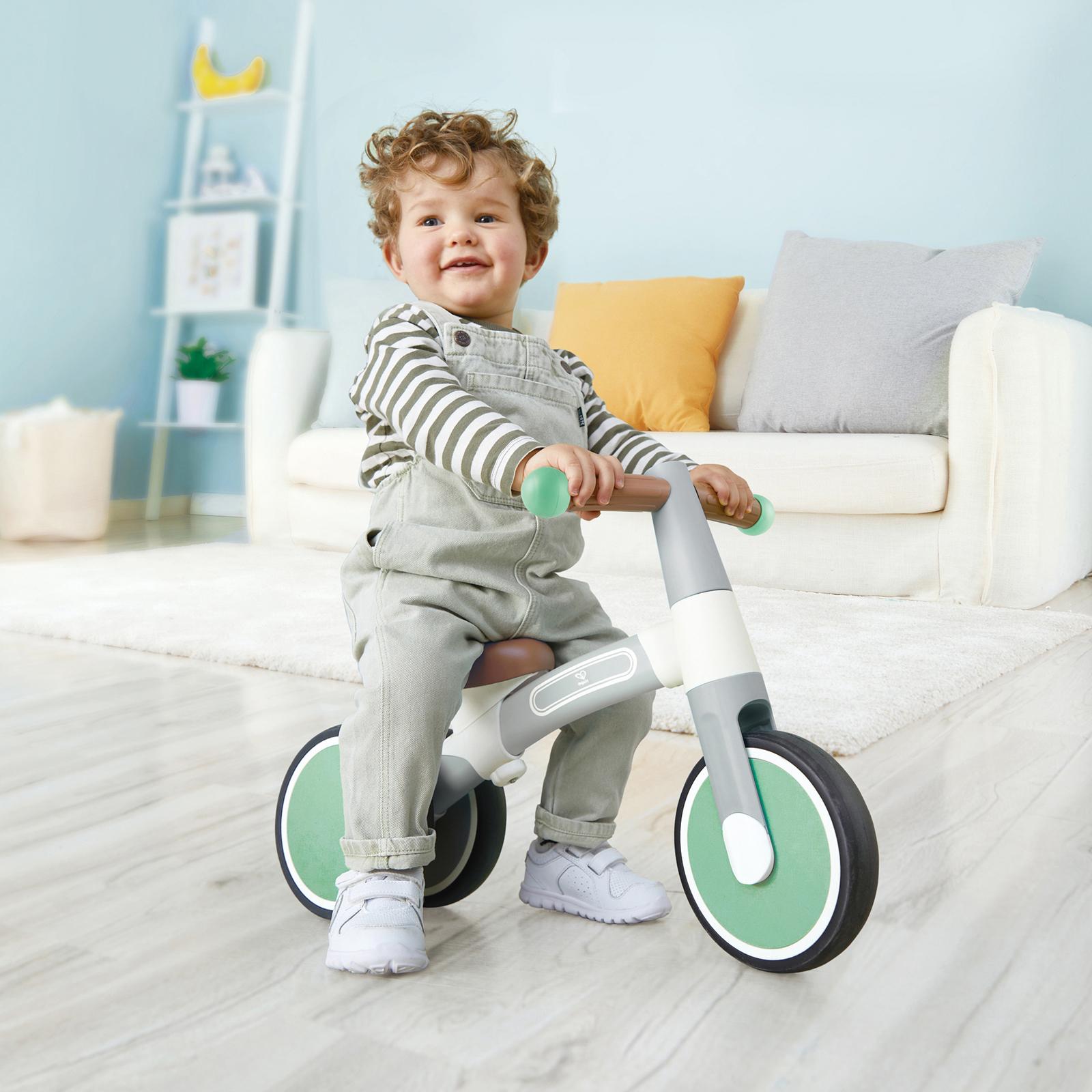 Watch your child get up and go with this lightweight balance bike. Designed to develop key skills like a sense of direction coordination and balance. Wheels made of TPU foam that is soft and flexible so it doesn't scratch floors. Lightweight aluminum alloy frame. Great for indoor and outdoor play. Features steering limit for safety. Anti-slip handles. Adjustable cushioned seat. Assembly required. Recommended ages 18 months and up.