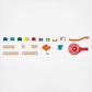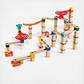 Build your own marble track for a fun fast-paced time. Construct the track with blocks tracks marbles and more. Race between two teams Domino and Bell. Encourages hand-eye coordination planning and logical thinking. Includes a jump bell bucket sliding track funnel and 18 dominoes. Recommended ages 3 years and up.
