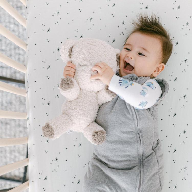 Designed by Dr. Harvey Karp, pediatrician, noise guru, and author of the popular Happiest Baby and Happiest Toddler parent guides, Snoo Bear will be so much more than your tot’s trusted friend. This huggable cub is 3 innovative must-haves in one.