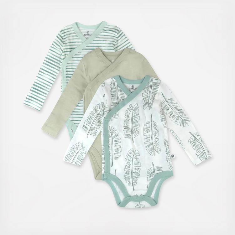 Our clever side-snap bodysuits are super functional. Crafted from soft, breathable 100% organic cotton, this bodysuit features a comfy wrap closure and side snaps, allowing for quick diaper changes. Available in a 3-pack, this soft bodysuit has long sleeves with convenient fold-over cuffs to protect baby from little fingernail scratches. Wrap your baby in luxe style with friendly features you will love.