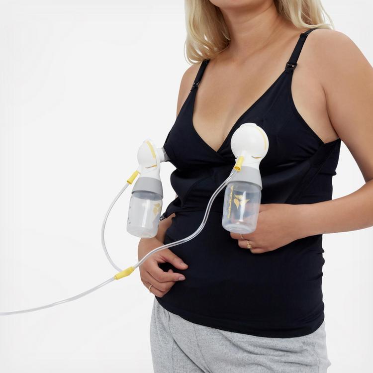 When hot flashes hit, this seamless stretch cami wins for most valuable layer. The technical fabric has built-in cooling minerals to prevent overheating - plus it wicks away moisture and dries super fast. We love the one + done drop-cup design you can wear as a smoothing base layer, nursing cami, or hands-free pumping tank without wardrobe changes. Bonus: we tested it with wearable pumps too - yup, it's compatible.