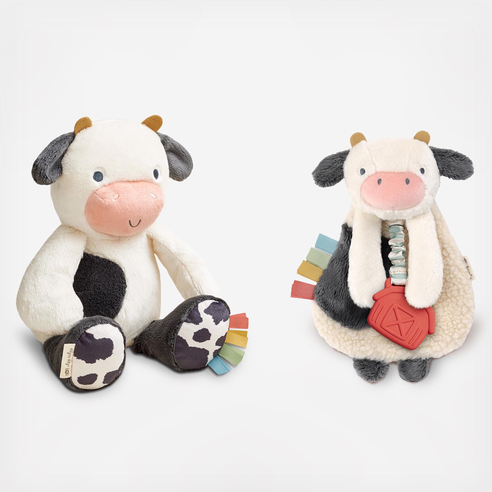 Our iconic characters of the Snuggleverse brought to life in a soft, cuddly plush. Features multiple soft fabric textures and ribbons for sensory exploration and promotes self-soothing. Our snuggly Itzy Lovey™ features soft Sherpa fabric and textured ribbons that baby will love to explore! A textured silicone teether helps massage and soothe sore gums, and crinkly arms and legs are sure to keep baby entertained with their gentle sound.