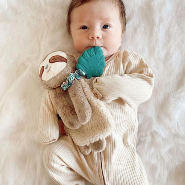 Cuddle & Bond. These snuggly Lovey features soft sherpa fabric and textured ribbons that baby will love to explore. A textured teether helps massage and soothe sore gums, and crinkly arms are sure to keep baby entertained with their gentle sound.