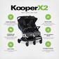 The KooperX2 was designed for comfort: it features the biggest wheels of any comparable stroller on the market, as well as extra spacious, reclining seats for just kicking back and relaxing. As you've come to expect with all of Joovy's products, the KooperX2 has undergone extensive safety testing and is manufactured without flame-retardant chemicals or other harmful industrial materials.
