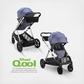 Each seat can hold up to 55 lbs. and can sit forward-facing or parent facing in a high or low position on the stroller frame. Still with all the features loved from our original Qool like the adjustable, UPF 50+ sun protection canopy, a large mesh peek-a-boo window, swivel front wheels, and the multi-position recline seat. The joovy Qool fabric is recycled material each made from 55 recycled water bottles. It has a one-step fold and parking brake. Use with or without toddler bench seat, all-weather protection rain shield, bassinet, car seat adapters, and other accessories.
