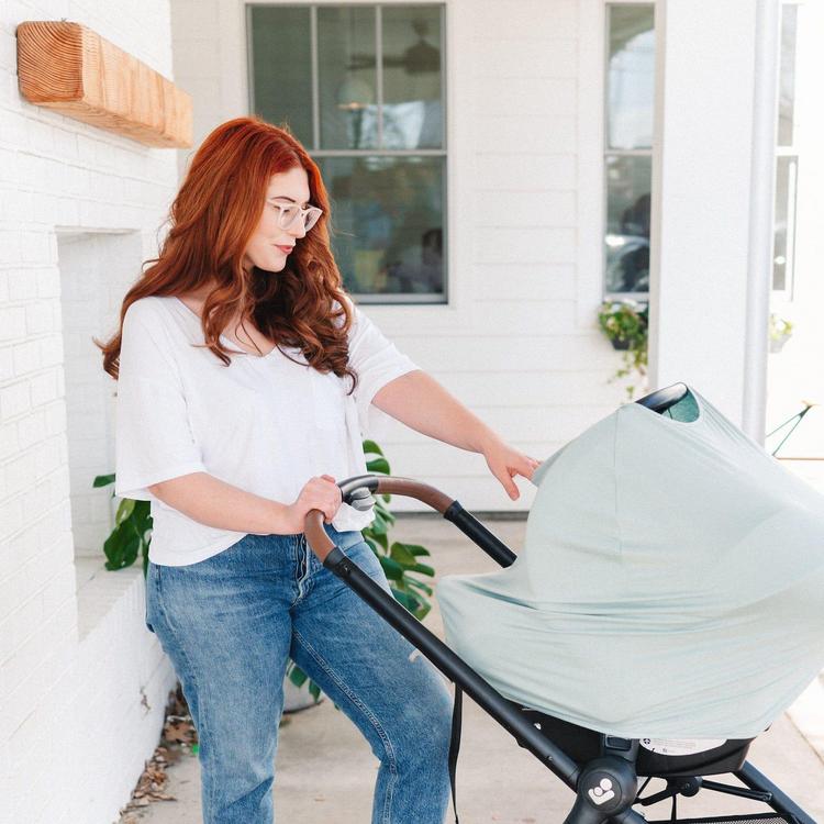Crafted from super breathable bamboo rayon, the infant car seat cover protects your little one through the seasons, from bright sun rays and pesky mosquitoes, to light rain and cold winds. Light, stretchy, and baby soft, this car seat cover can also be used as a nursing cover, shopping cart cover, high chair cover, and so much more!