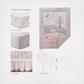 The Colette Nursery Collection is inspired by a magical world full of unicorns and rainbows. The quilt features an appliqued and embroidered unicorn playing in a field surrounded by trees and mushrooms, with one fitted sheet matching with the design of the quilt, and the other with beautiful flowers. Adding soft and feminine accents, this design will transform your child's room.