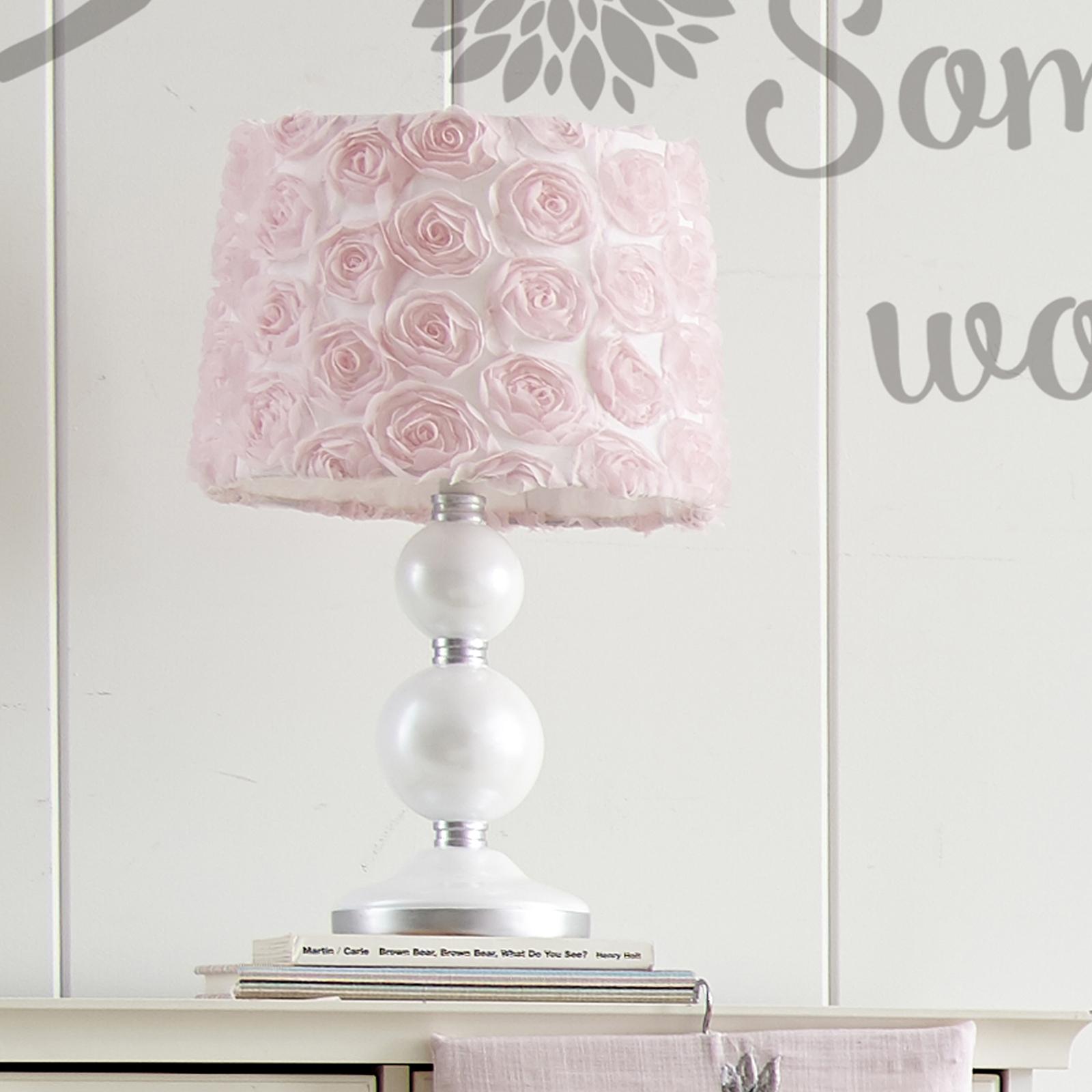 The Baby Elise Lamp Base and Shade is a great addition to your nursery. Inspired by gorgeous flowers, this lamp features a classic, spindle base with a dimensional rosette shade. This soft and sweet lamp will brighten up the room while adding a decorative accent to your nursery.
