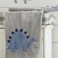 Wrap your baby up in warmth and comfort with the Baby Kipton Blanket. Made of an adorable soft plush fabric, this blanket features an appliqued and embroidered dinosaur, ground and the word sleepy-saurus embroidered.