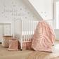 The Skylar Nursery Collection is inspired by Soft Cascading Ruffles. The quilt features tiered, ruched bed skirt, cotton crib fitted sheet with coin medallion print and wall decal with stars and the words "twinkle twinkle". Adding accents, this design will transform your child's room!
