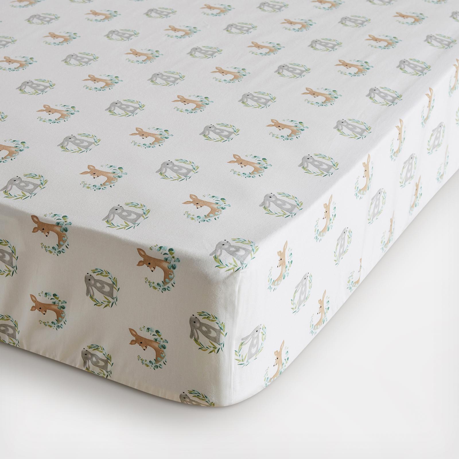 Your baby will rest peacefully on the Baby Woodland Pals Fitted Crib Sheet. This fitted sheet is covered in rows of cute deer and bunny portraits on a ground. This Cctton fitted sheet is gentle on your baby's soft skin and features elastic edges so that it fits snuggly around a standard-size crib mattress, staying in place until you remove it for cleaning. This sheet will transform your nursery, adding fun and adventurous accents. Enjoy for years to come.