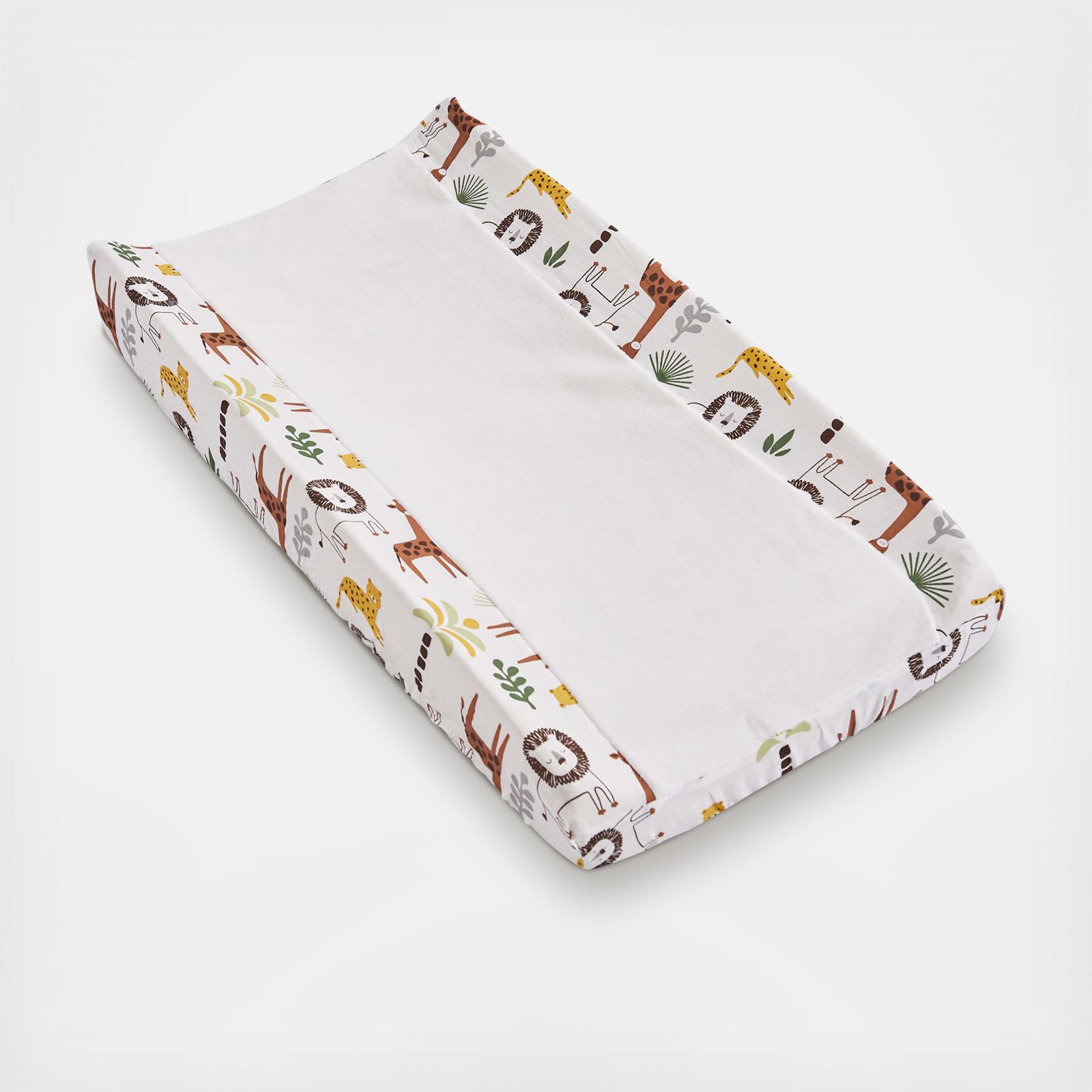 Ensure your baby's diaper change will be easy and comfortable with the Baby Zuma Changing Pad Cover. This fashionable pad cover features tossed jungle characters and palms in neutral tones with a plush center. This changing pad is easy to use and care for and has elastic sides for a tailored, snug fit. Adding fun and adventurous accents, this item will transform your nursery.