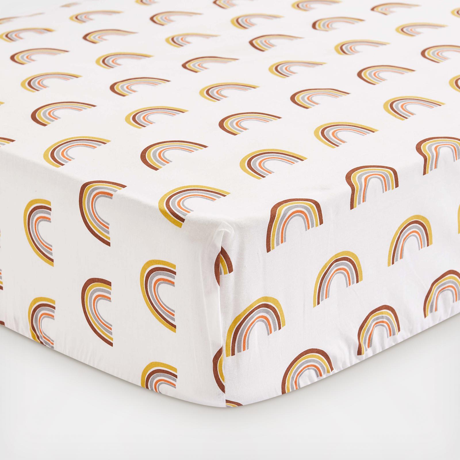 Your baby will rest peacefully on the Baby Baby Zuma Fitted Crib Sheet. This fitted sheet is covered in rows of neutral tone rainbows on a cream ground. This Cotton fitted sheet is gentle on your baby's soft skin and features elastic edges so that it fits snuggly around a standard-size crib mattress, staying in place until you remove it for cleaning. This sheet will transform your nursery, adding fun and adventurous accents. Enjoy for years to come.