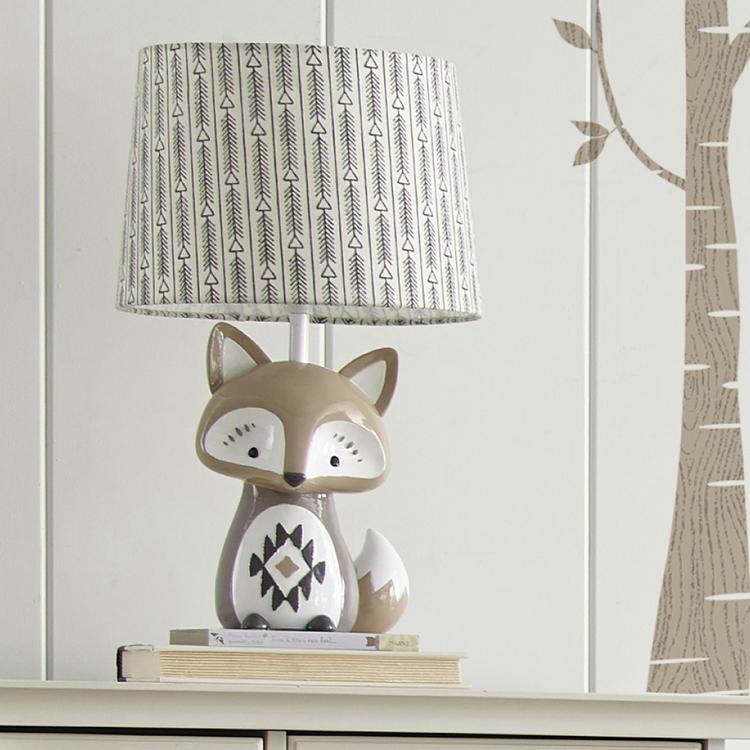 A beautiful accessory for any baby nursery, the Bailey lamp features an adorable hand painted fox base and arrow printed black and white shade to brighten and soften the nursery. The base and shade is 22 in. high and 6 in. diameter making it an easy fit in any nursery.