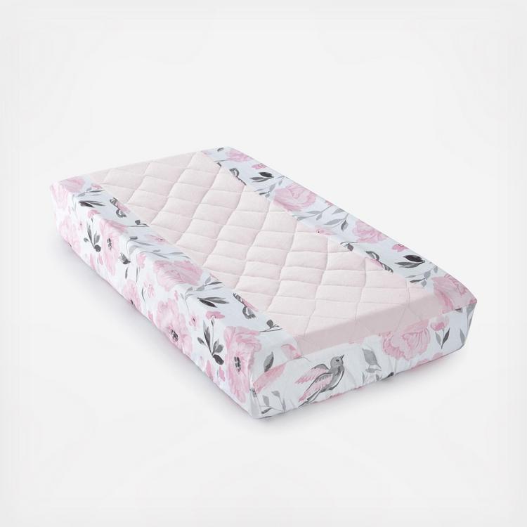 A beautiful accessory for any baby nursery, the Elise changing pad cover features gorgeous flowers in greys and pinks. The changing pad cover fits most standard changing pads. The pink, grey and white color palette of the Elise changing pad cover makes this, or any of the nursery accessories that coordinate with the Levtex Baby Elise collection, the perfect baby shower gift or accent for a new nursery.