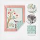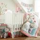 The Fiona nursery set is a patchwork of floral and lattice 100% cotton prints, rich pin-tucked velvet and lace trim and features 5 beautifully coordinated and complementary pieces, consisting of a quilt, a 100% cotton fitted sheet, a tiered dust ruffle, a diaper stacker and a large decorative wall decal. The pink, teal and white color palette of the Fiona crib set is soft, sweet and supremely feminine, making this bedding set, or any of the nursery accessories that coordinate with it, the perfect baby shower gift or accent for a new little girl nursery.