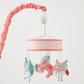 A beautiful accessory for any baby nursery, the Fiona mobile features gorgeous grey, pink and white plush birds rotating under a pink and white ring trimmed with grey lace. Featuring a rotating array of 10 lullabies and nursery rhymes, the mobile will entertain for hours. The pink, teal and white color palette of the Fiona blanket makes this, or any of the nursery accessories that coordinate with the Levtex Baby Bailey collection, the perfect baby shower gift or accent for a new nursery.
