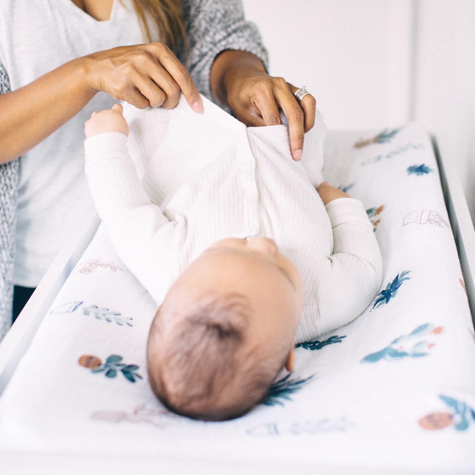 As soft as a baby's bottom but easier to clean! Designed in Little Unicorn's signature prints to match your crib sheets, bibs, and modern nursery. Features an elastic edge for a snug fit and stitched holes for security straps.
