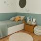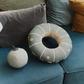 Connect with other planets/imaginary worlds with the Cushion Interactive UFO! An innovative two-part design, a donut shape with small cords at the bottom to simulate the landing legs of the craft and a ball with a cord at the top to simulate an antenna. The design is made of natural fabric with terrazzo green screen printing and details in blue sage, dark grey, and honey. Ideal both as a play element and as a decorative accessory for any room or play space. Get ready to take off into the fun with the cushion interactive UFO.