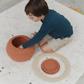 Let your imagination fly beyond the stars with the Basket Saturn. Handcrafted with braided cotton cord in vibrant mixes of red, honey, terracotta, and orange colors, and reinforced with recycled PET fibers for added durability. Just like the planet Saturn, it features a removable ring made of cotton cords with two different colors: blue sage on one side and honey on the other. Perfect as a stylish decorative element or a fun space-themed toy for little explorers.