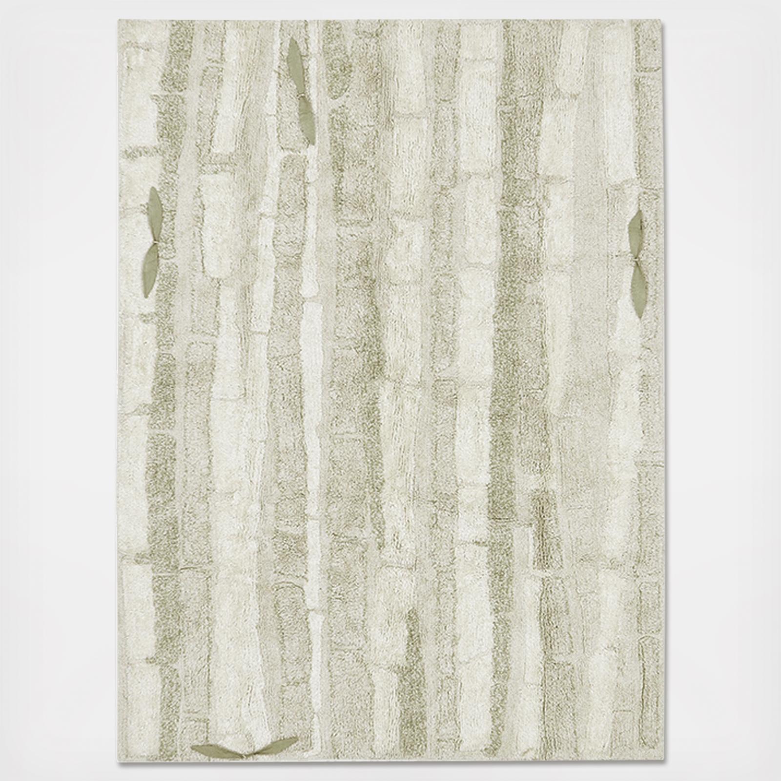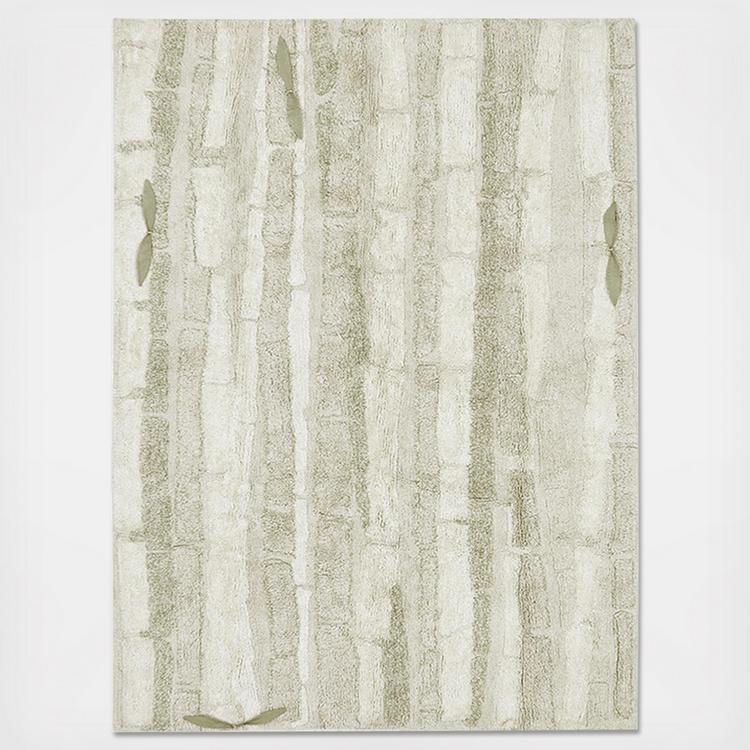 Transform your nursery into a serene bamboo forest with this softly shaded cotton rug. Combining shades of cotton with a softer yarn of cotton mixed, this rug provides a cozy and natural atmosphere for your little one. It comes decorated with 5 removable bamboo leaves in embroidered organic cotton poplin, adding a touch of playful charm to your nursery decor. Plus, the rug comes packed in a practical reusable cotton tote bag for easy storage and transportation.