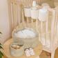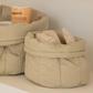 Looking for a stylish and practical way to keep your baby essentials organized? Look, no further than this soft basket set. Made from organic cotton poplin and quilted with GRS certified recycled polyester fill, these baskets are both eco-friendly and durable. Perfect for use in your little one's nurser. The larger basket even comes adorned with a charming leaf in a matching color. Keep everything you need within reach and add a touch of style to your nursery with the soft basket set.