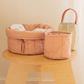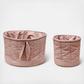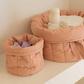 Looking for a stylish and practical way to keep your baby essentials organized? Look, no further than this soft basket set. Made from organic cotton poplin and quilted with GRS certified recycled polyester fill, these baskets are both eco-friendly and durable. Perfect for use in your little one's nurser. The larger basket even comes adorned with a charming leaf in a matching color. Keep everything you need within reach and add a touch of style to your nursery with the soft basket set.