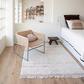This rectangular rug features a basic design that complements the Eco-City theme collection, with a matching color palette that makes it suitable for home spaces, elegant teens' rooms, and even nurseries where it can serve as a central piece. With a touch of color, this rug exudes elegance and is the perfect addition to any room.