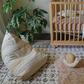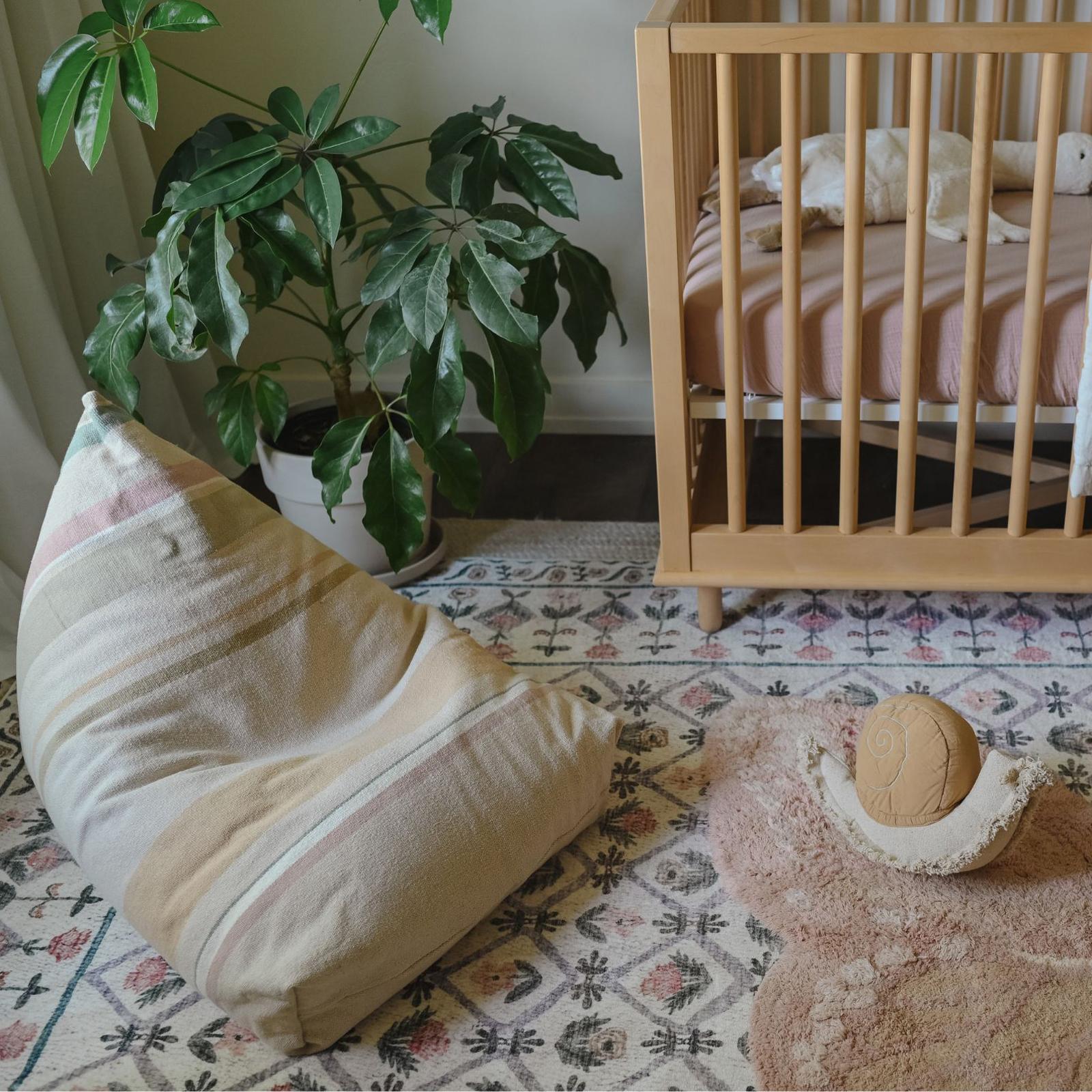 This unique artisan piece is machine washable at home and is carefully designed and sustainably handcrafted in our own factory using natural fibers and upcycled materials, non-toxic dyes, and a firm commitment to the planet and people. From the design process, to material sourcing and production, we always choose options that minimize waste and ensure long-lasting designs.