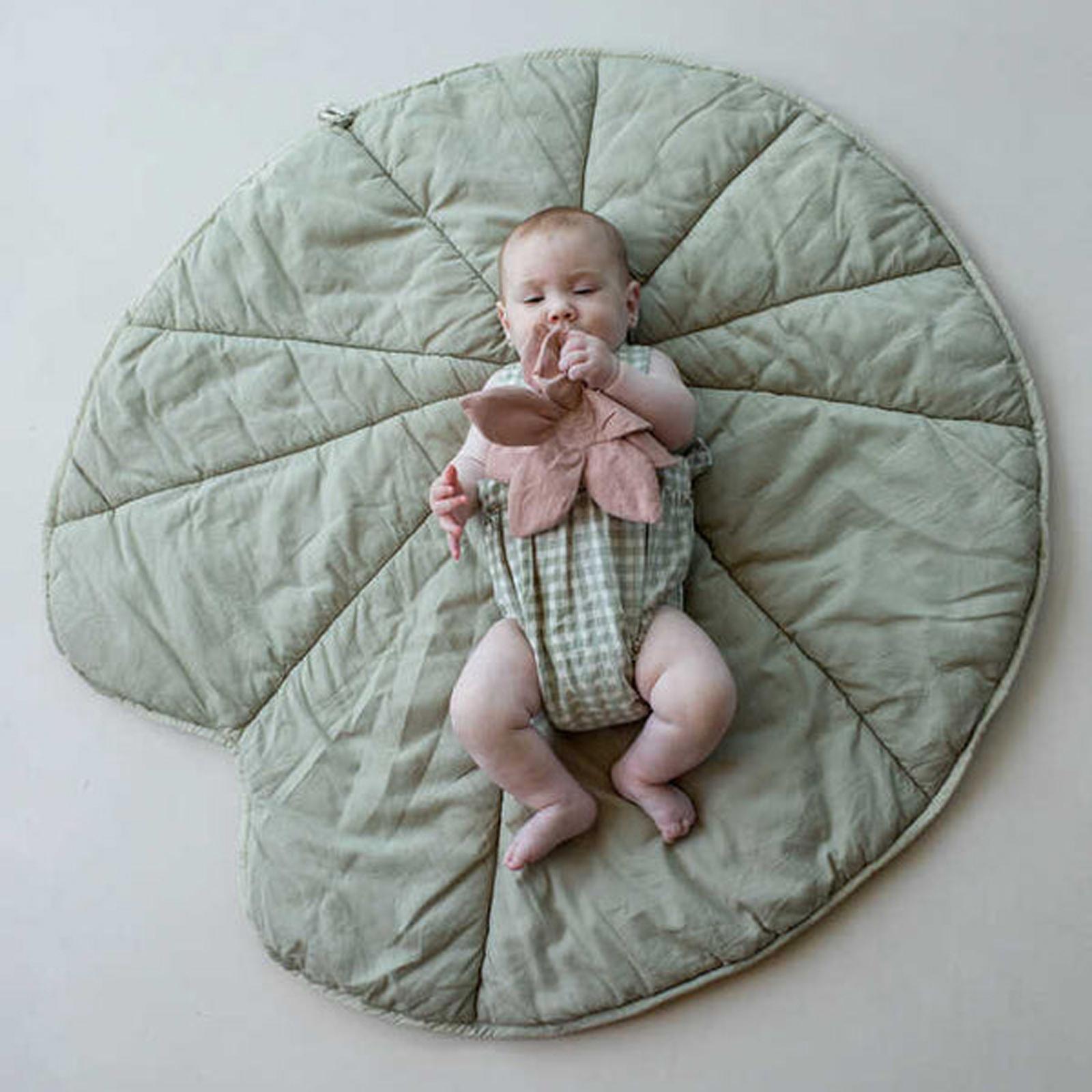 Oh, just love seeing babies light up with joy during tummy time. That's why created a play mat that will keep your little one entertained one giggle at a time. Water lily pad-shaped play mat is as soft as a cloud and the perfect place for your baby to explore and grow. And, to add even more excitement, included a soft cotton stimulation toy in the shape of a water lily flower with crinkling petals. It's the perfect way to engage their senses and encourage exploration.