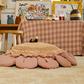 Our Daisy floor cushion is a generous throw pillow shaped like a flower. With large petals in cotton canvas all around, the cushion features a tufted cotton center, in Golden chenille blended with rows of longer piles to create the textured surface of the middle of a flower. Filled with soft polyester filler. No zipper.