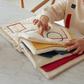Learn to recognize basic shapes and colors! Inspired by the geometric shapes that identifies the Bauhaus movement, the Bauhaus book features primary colors and shapes using cotton canvas fabric patches and cut-outs, mixing different textures to explore. Handcrafted from textile scraps combined with embroidered details, the book is a first introduction to basic colors. It is made by upcycling textile scraps from our own factory making it a sustainable choice for your kids decor.